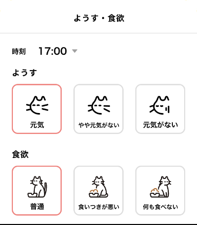 ねこちゃんの「ようす・食欲」を