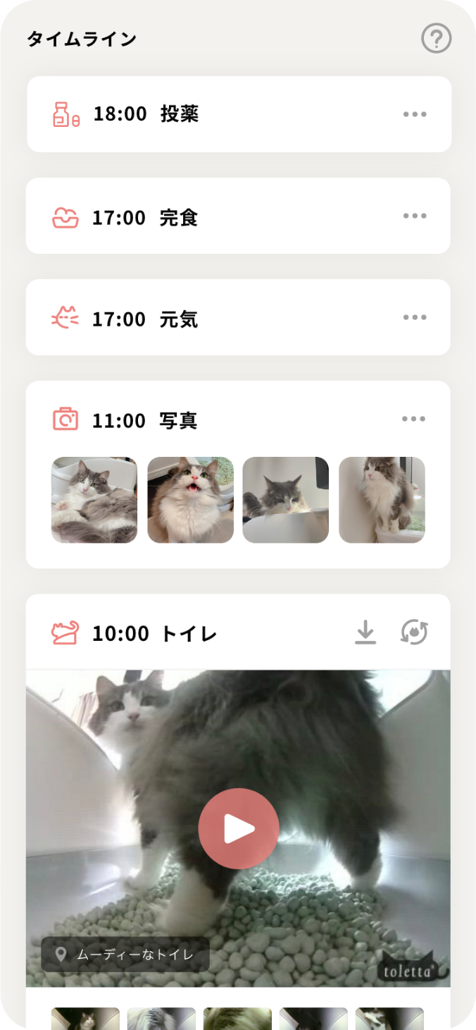 トイレの様子の動画以外にも、食事の量や投薬、今日の様子、