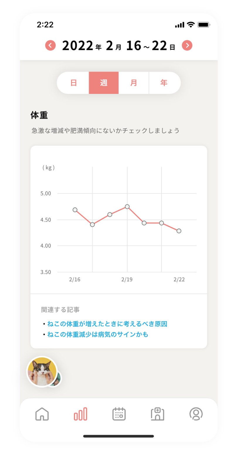 ねこちゃんの健康が見守れます。