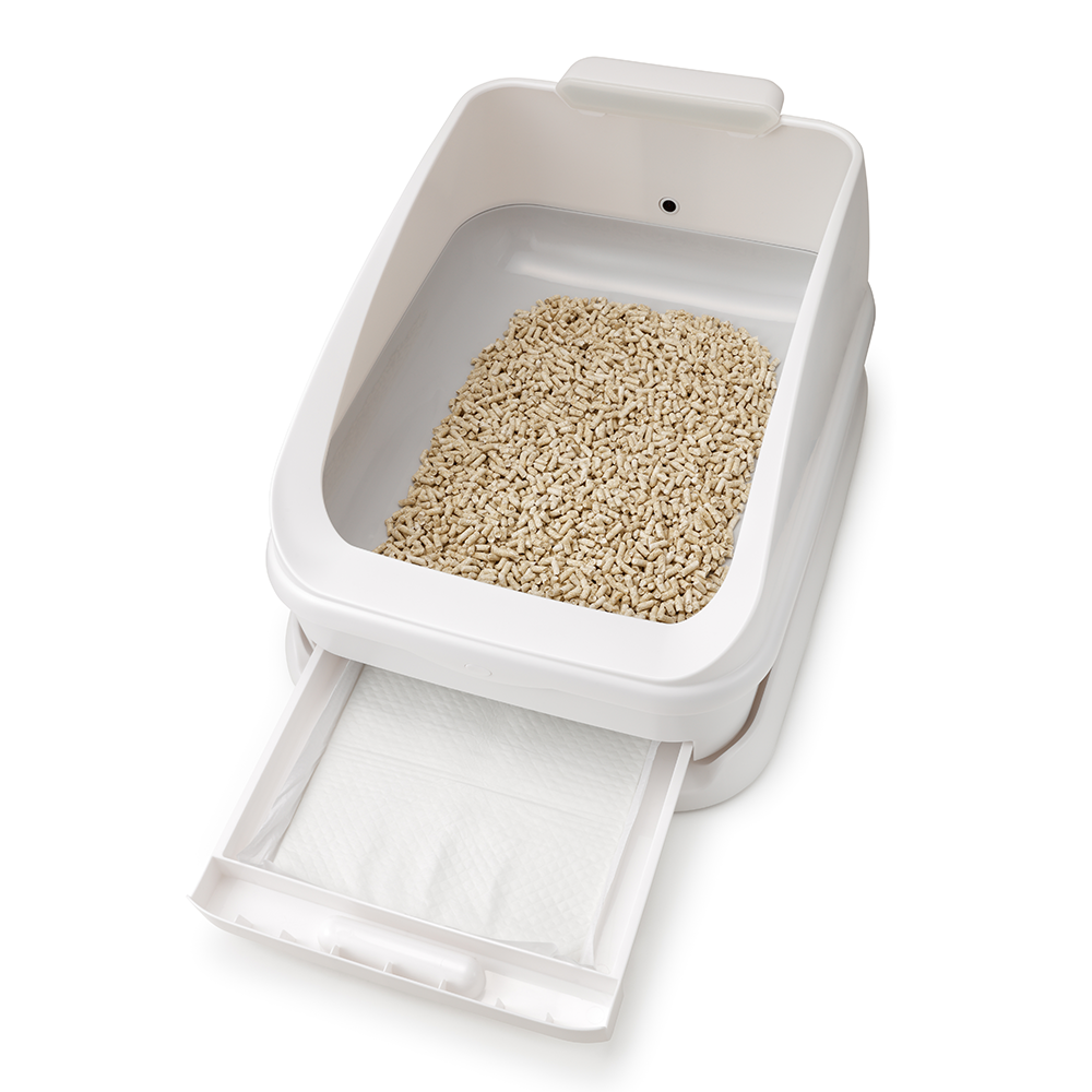 尿トレイを引き出して、使用済みのシートを取り出し、新しいシートを敷いてください。